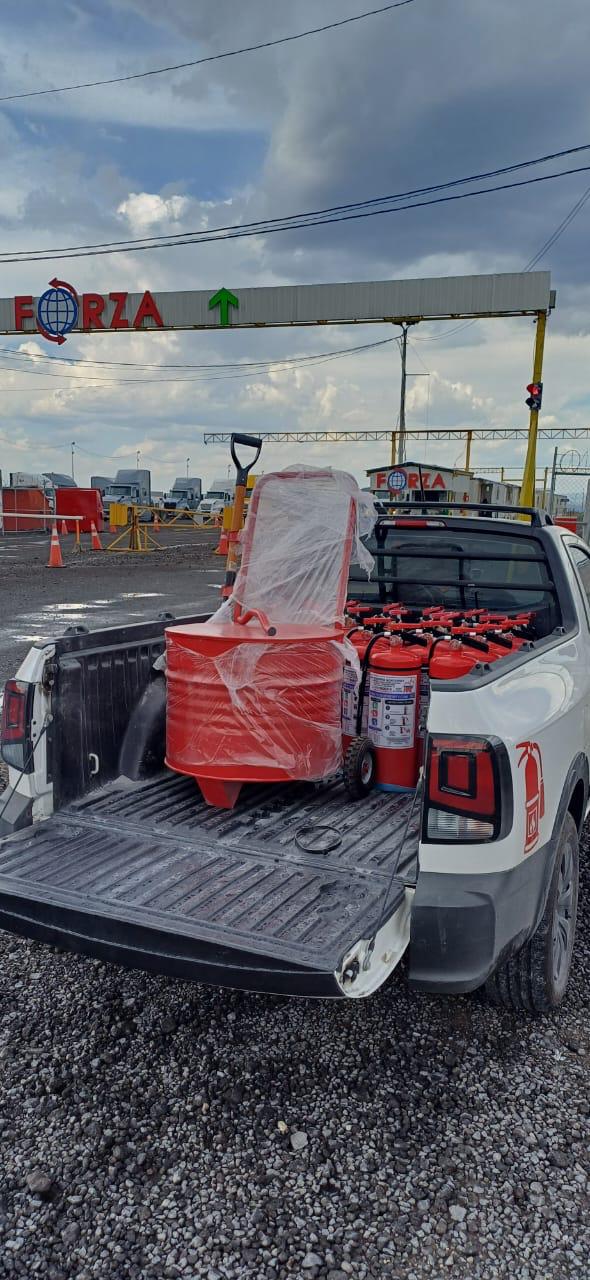- Extintor tipo unidad móvil de presión contenida cargado a base de polvo químico seco, al 75% de fosfato monoamónico certificado.